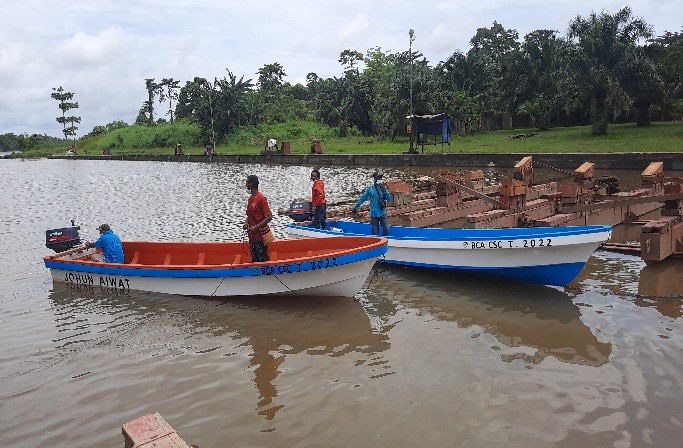 Handover of 2 units of fiber boats and a 40 PK Yamaha engine to the Head of Aiwat Village