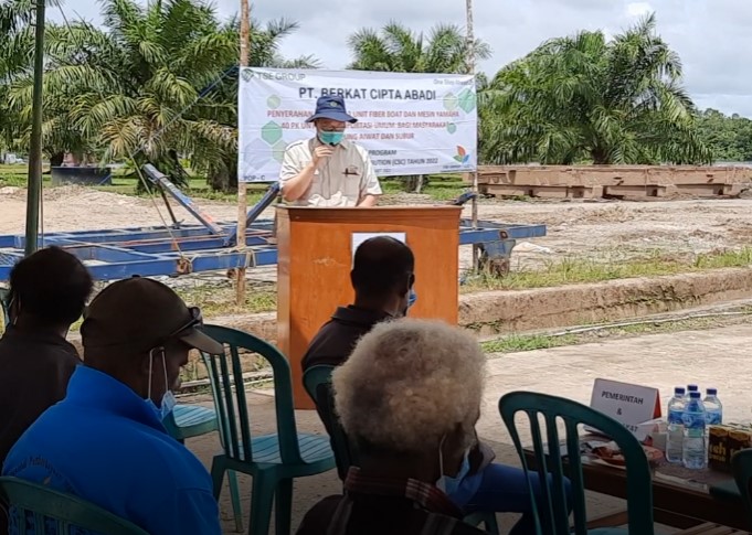 ASIKI, April 4, 2022 – One of the oil palm plantation companies operating in Papua, PT Berkat Cipta Abadi (PT BCA) distributed social assistance to the community of Aiwat and Subur Villages, Asiki, Boven Digoel, Papua (25/3). The social assistance provided was in the form of 2 transportation units of fiber boats and a 40 PK Yamaha engine. The provision of assistance is intended to facilitate all community activities in both villages.