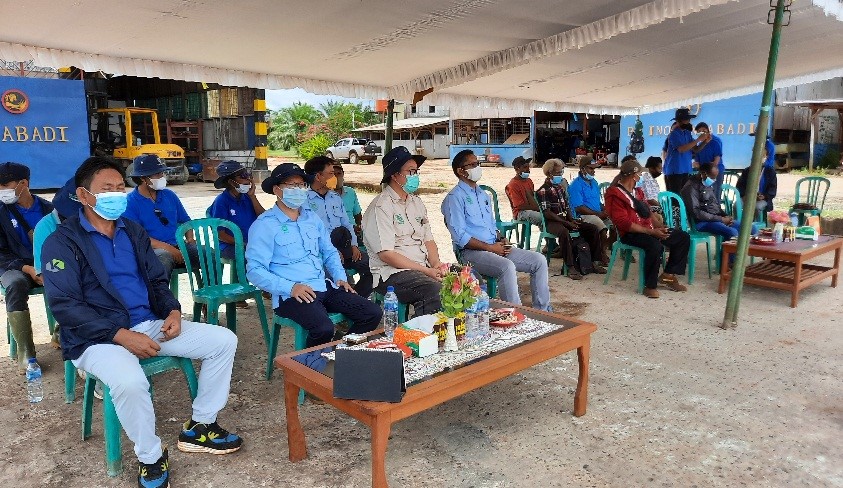 Photo: Joint photo at assistance delivery by the management of PT Berkat Cipta Abadi (BCA) with the community representatives of Aiwat and Subur Villages
